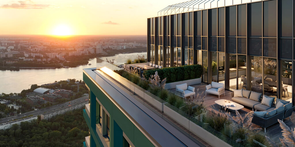 Окна от пола до потолка обеспечивают панорамные виды на центр Москвы, водохранилище, каналы и парки. Большинство квартир имеет окна на две стороны, что улучшает инсоляцию и создаёт ощущение открытого пространства. Просторные кухни-гостиные, балконы, возможность установки систем «умный дом» делают жильё максимально комфортным и технологичным. Все квартиры передаются в черновой или white-box отделке, что позволяет будущим резидентам реализовать индивидуальный интерьер с минимальными затратами времени и ресурсов.